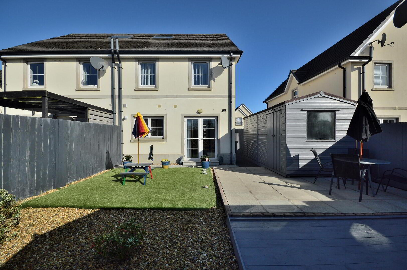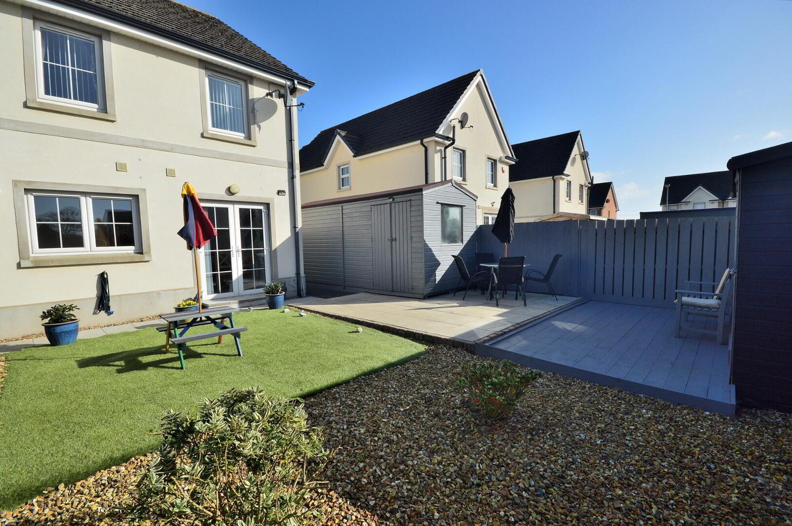 Skyline are proud to present this modern and highly attractive bay fronted semi detached home. Located within a popular residential development and on the edge of Donaghadee Town Centre, the property enjoys a prime south facing position with private aspect and countryside views to the rear. Internally the home is immaculately presented and the generously proportioned accommodation briefly comprises window lit central entrance hall, lounge, kitchen / dining room, utility room, wc, landing with velux skylight and store cupboard, family bathroom and three double bedrooms with master en-suite shower room. The property further benefits from double glazing and gas fired central heating. Outside to front is a tidy lawn garden and path with tarmac driveway. To the rear is a fence enclosed fully landscaped garden in artificial lawn, paved patio and timber decking area with 2 timber storage sheds. Included is a timber structure garden room / office / workspace with separate power supply, sockets and lights. This fabulous home is attractively offered with no onward chain and will be in high demand amongst first time buyers and young families alike. Early viewing is essential to avoid disappointment.